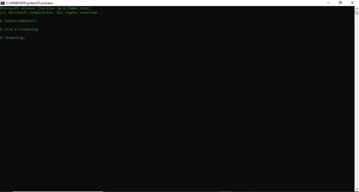and call the folder by giving a command. eg: our Indexing folder is on E drive. So give the command like this "drive name:"